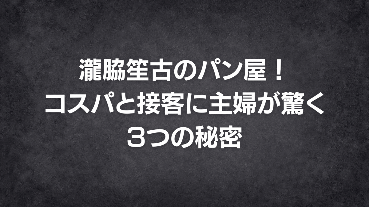 瀧脇笙古のパン屋!コスパと接客に主婦が驚く3つの秘密